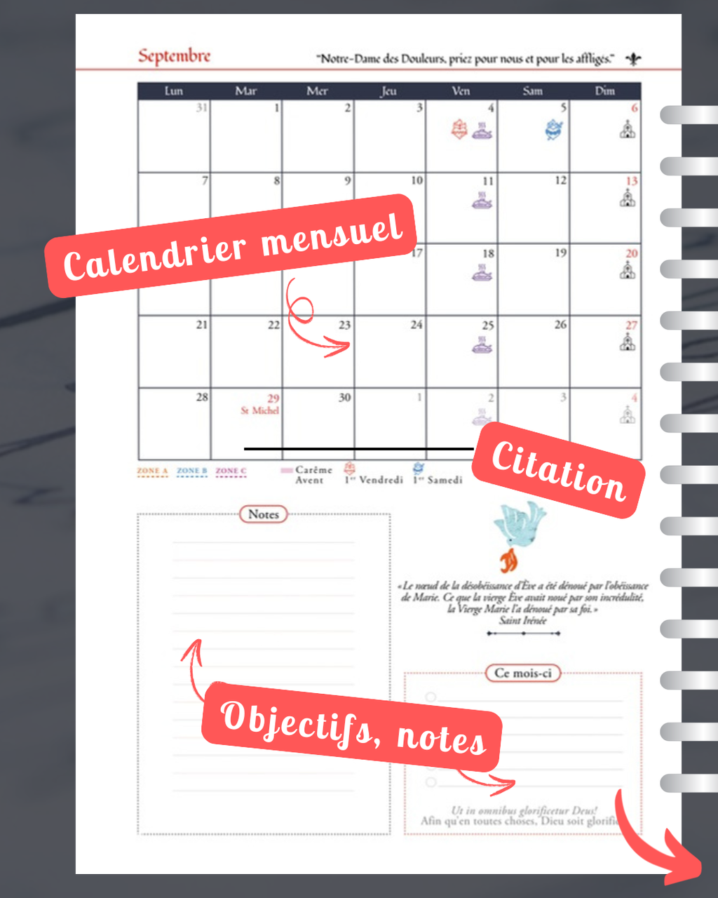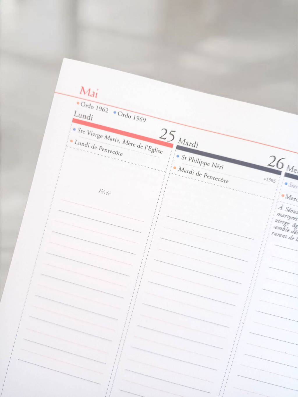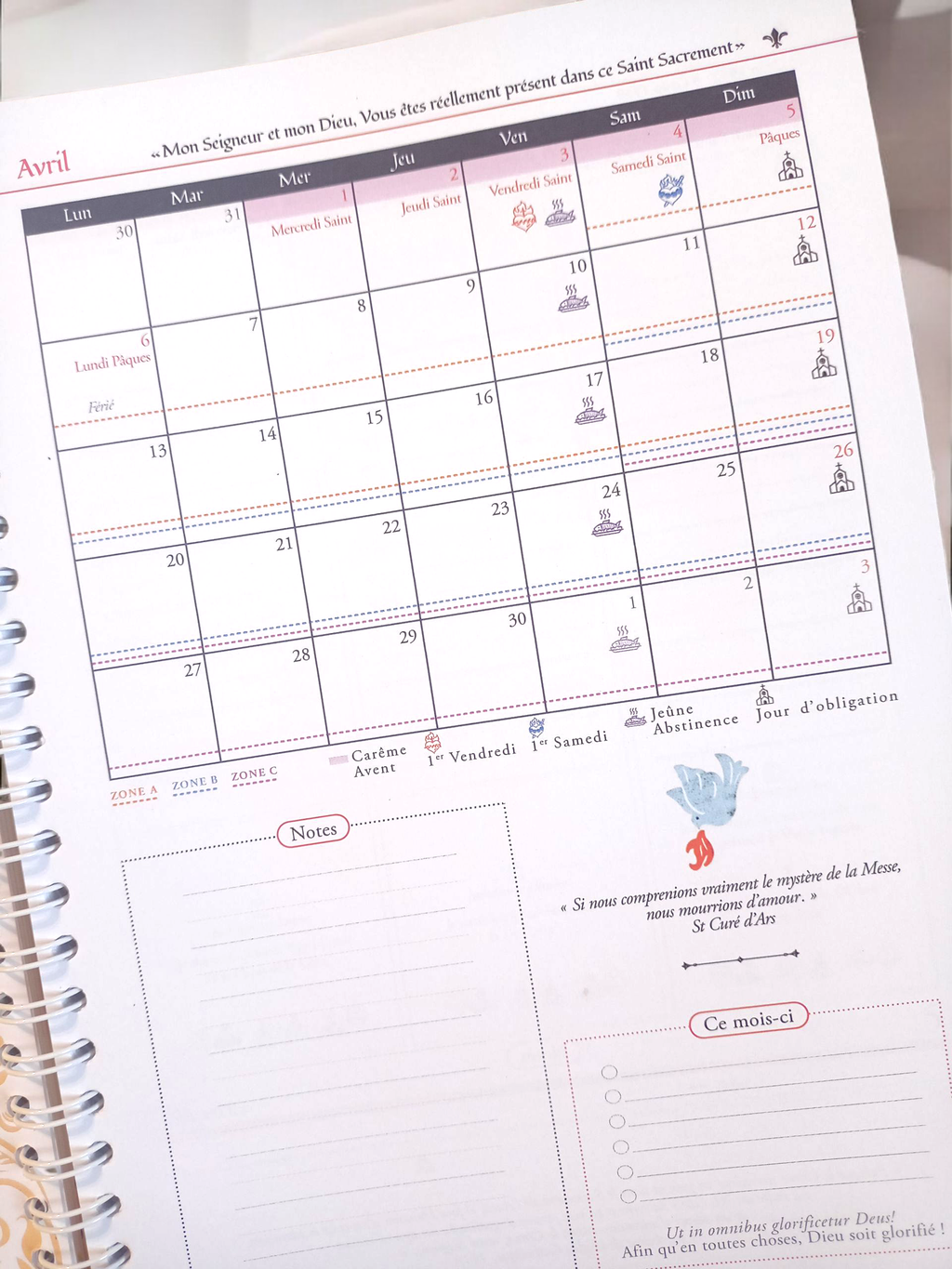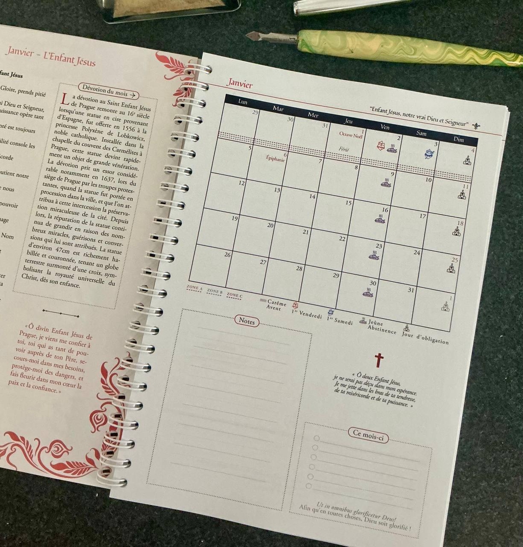 ➡️ Les 2 calendriers liturgiques sont enseignés avec un code couleur pour les différencier (1962 dit traditionnel + 1969 nouvel ordo)