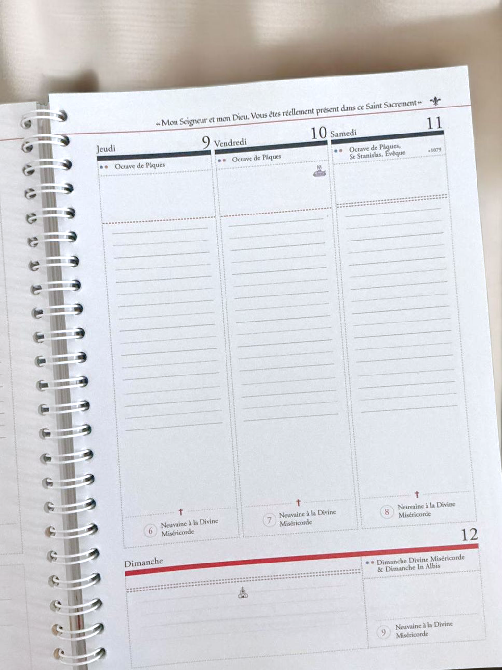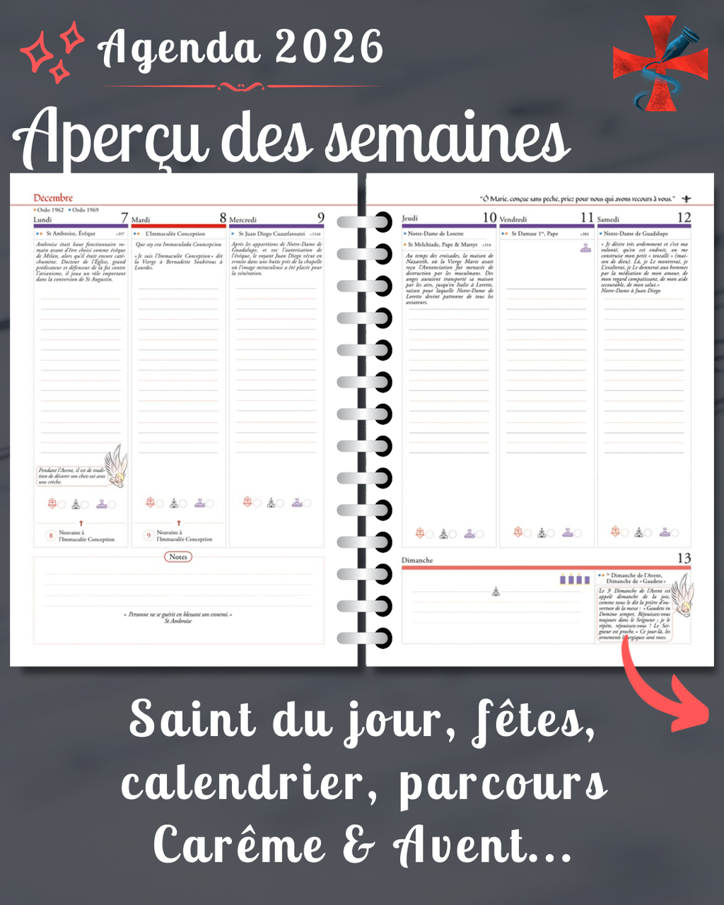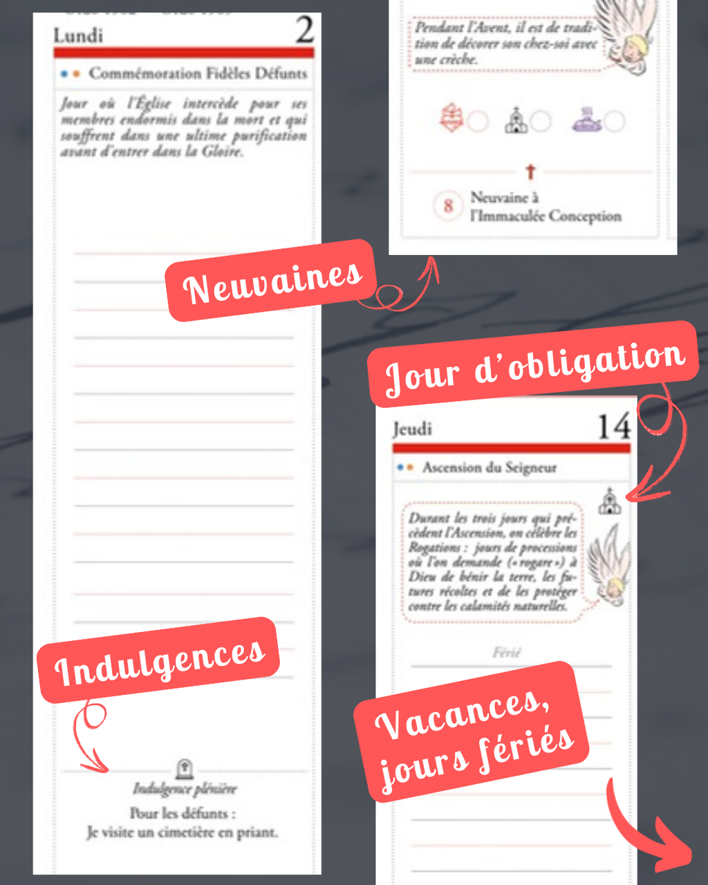 ➡️ Les 2 calendriers liturgiques sont enseignés avec un code couleur pour les différencier (1962 dit traditionnel + 1969 nouvel ordo)