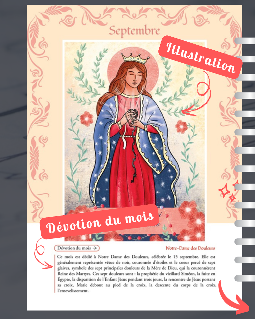 🎨 12 illustrations réalisés par l'atelier, pour chaque dévotion du mois.