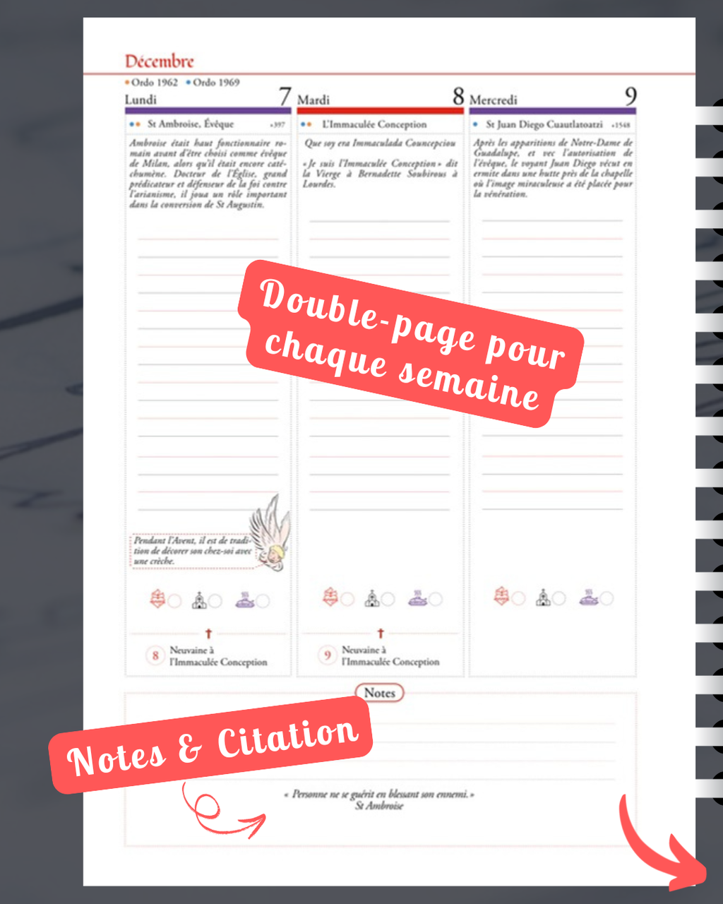 📒 L’agenda est au format A5, relié avec des spirales, et contient 156 pages.